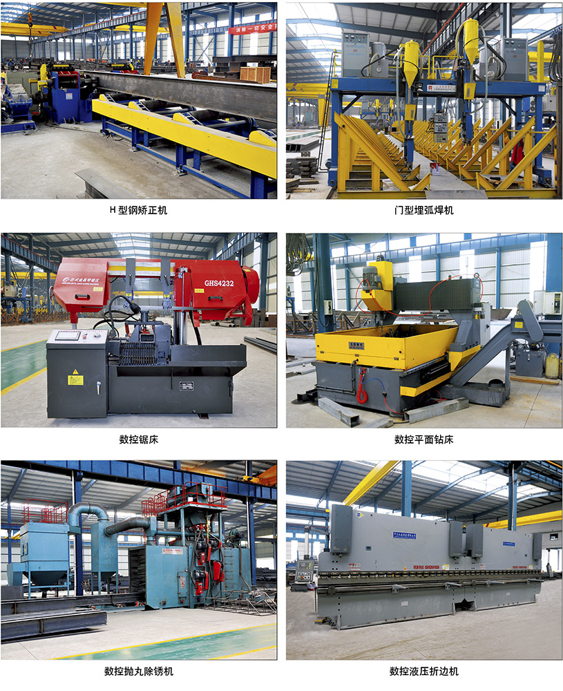 公司設(shè)備先進(jìn),采用先進(jìn)的數(shù)控技術(shù),自動化速度高,鋼結(jié)構(gòu)生產(chǎn)區(qū)擁有數(shù)控多頭直條氣割機(jī)、數(shù)控鉆床、H型鋼自動焊接生產(chǎn)線、全自動組力生產(chǎn)線、門式自動焊生產(chǎn)線,拋丸除銹生產(chǎn)線以及探傷檢測等國內(nèi)先進(jìn)設(shè)備。擁有與建筑幕墻制作安裝配套的丁基膠涂布機(jī),雙組份打膠機(jī),玻璃磨邊機(jī)、中空玻璃鋼化機(jī)以及韋氏硬度鉗、氧化膜測厚儀、水平儀等專業(yè)幕墻生產(chǎn)加工設(shè)備和質(zhì)量檢測設(shè)備。